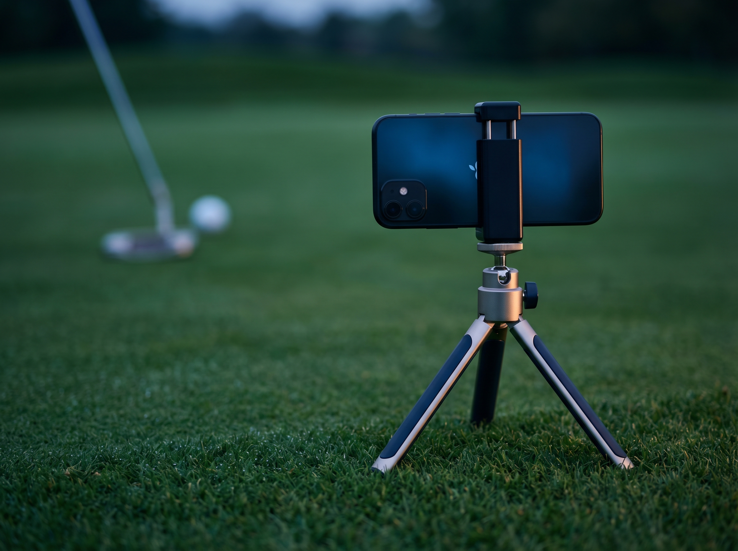 Prop up your phone and putt. Motion-triggered capture auto-records every stroke — no tapping between reps.